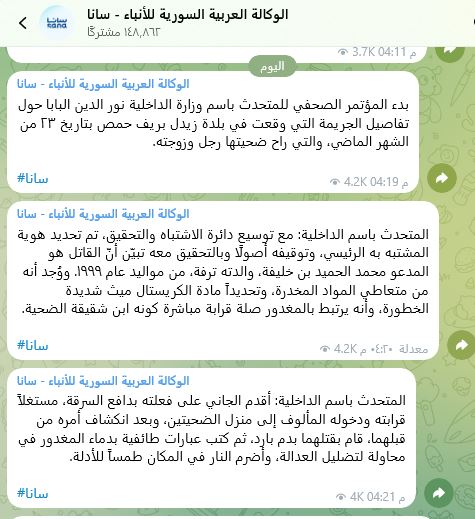 وخلال مؤتمر صحفي عقده المتحدث باسم وزارة الداخلية في السلطة المؤقتة، نور الدين البابا، اليوم 3 كانون الأول/ديسمبر 2025 حول تفاصيل الجريمة التي وقعت في زيدل بتاريخ 23 من الشهر الماضي، أوضح أن التحقيقات قادت إلى تحديد هوية المشتبه به الرئيسي وتوقيفه وفق الأصول.