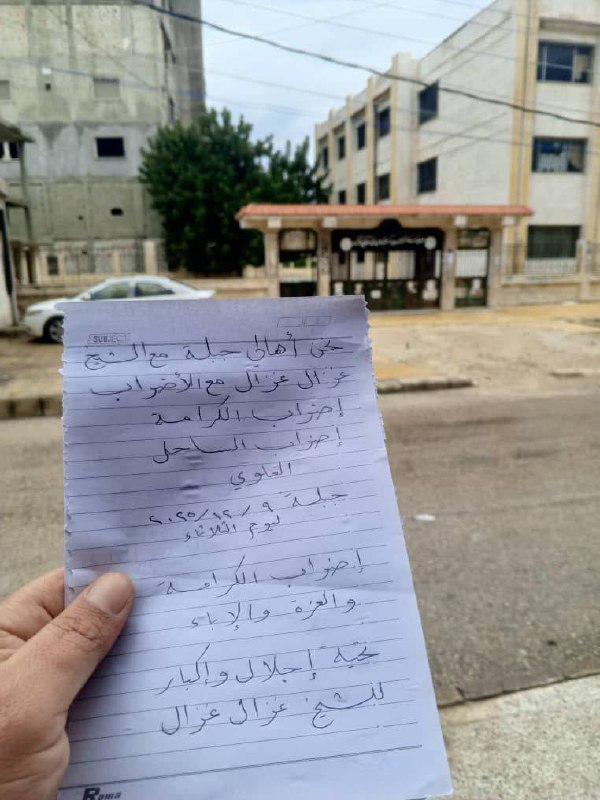 The “Dignity Strike” has entered its second day in a number of cities and towns along the Syrian coast, where most residents from the Alawite community adhered to the call made by the head of the Supreme Alawite Islamic Council in Syria and the Diaspora, Sheikh Ghazal Ghazal, who announced a general strike for five days, from 8 to 12 December 2025.