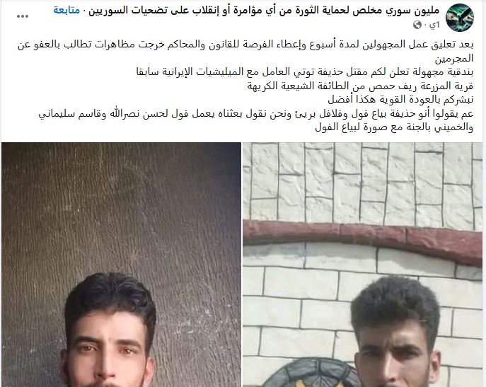 After the crime occurred, pages loyal to the authority circulated posts stating that the assassinations had “returned again in response to the demonstrations,” and one of the posts attributed to those pages read: