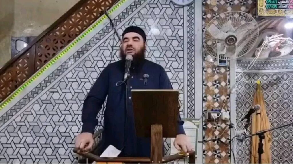 The Salafi sheikh Abd al-Qadir al-Bakkour appeared in a video recording inside a mosque in northern Syria, during a sermon monitored by “Rights Monitor” on 22 November 2025.